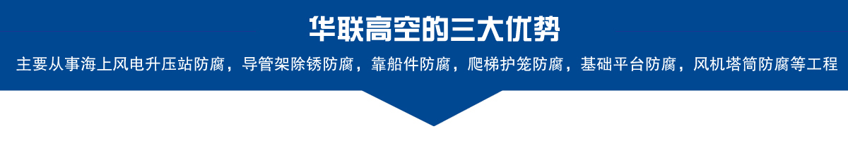 歡迎訪(fǎng)問(wèn)鹽城市華聯(lián)高空維修防腐有限公司官方網(wǎng)站!公司主營(yíng):海上風(fēng)電升壓站防腐,風(fēng)機(jī)導(dǎo)管架除銹防腐,靠船件防腐,塔筒防腐,鋼管樁套籠防腐,基礎(chǔ)平臺(tái)防腐,編號(hào)標(biāo)識(shí)噴涂等工程